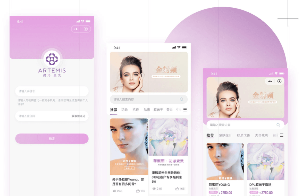 时代创信通过其品牌塑造的小程序向广大的友人,展示企业、理念及达到积极的信息宣传效果。视觉设计方面,以黑色调为主要背景色,向用户展现出作为医用美容设备企业的“专业性”品牌形象。同时多方面提升飞顿“数字化、信息化”互联网形象以及互动体验感。